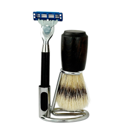 2. Omega Set Per Rasatura Pennello In Legno Scuro In Pura Setola + Rasoio