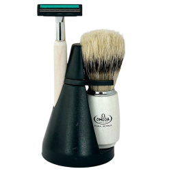1. Omega Set Per Rasatura Pennello In Pura Setola + Rasoio
